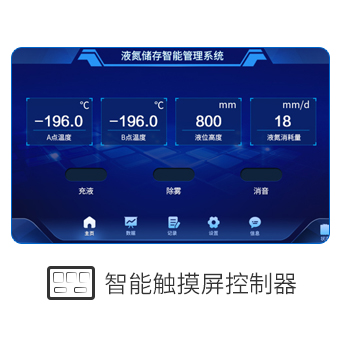 智能触摸屏控制,直观显示液氮罐温度、液位等各项运行参数,实现对液氮罐运行的智能控制;